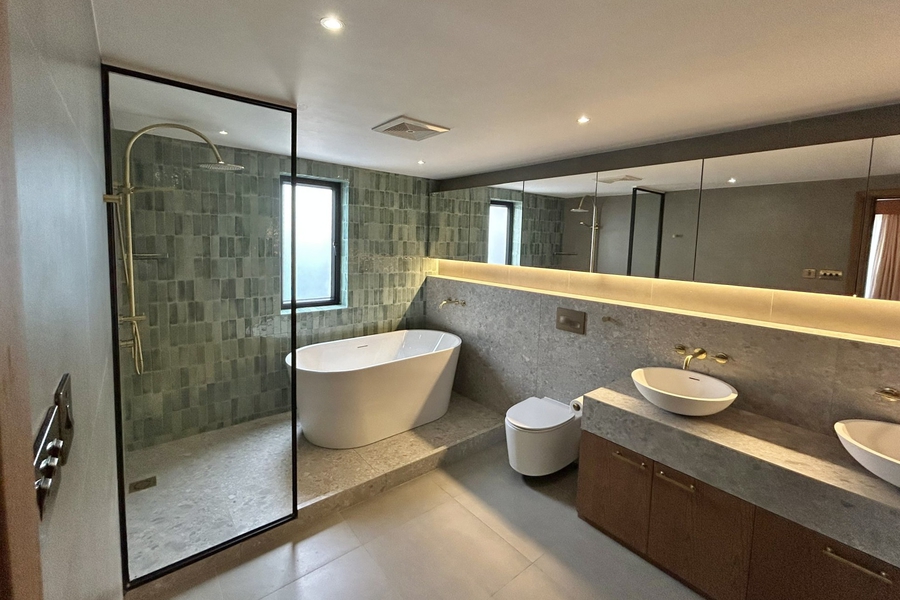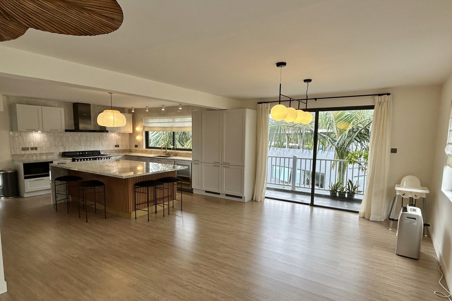 Experience refined living in this stylish Bali-inspired designer residence, thoughtfully crafted with a harmonious blend of Scandinavian, Moroccan, and Japanese influences. The heart of the home is an impressive kitchen, featuring exquisite Zellige tiles, a premium Smeg six-burner cooker, elegant Porto Grey sintered stone worktops, and a spacious island ideal for both cooking and entertaining. The expansive open-plan dining and living area provides a welcoming space for gatherings and relaxation. Retreat to the fabulous master bedroom, inspired by Moroccan design, complete with a luxurious ensuite bathroom offering both a bathtub and a shower. Step out onto the private rooftop terrace to enjoy serene mountain and lush green views, enhanced by the installation of solar panels for sustainable living. The home offers 3.5 bedrooms, including a versatile smaller room perfect for use as a study or nursery, and 3.5 well-appointed bathrooms. Additional features include a separate utility room and a peaceful setting near Shui Hau’s renowned kite surfing beach and scenic hiking trails. This exceptional property combines style, comfort, and a tranquil lifestyle in one of the area’s most desirable locations.