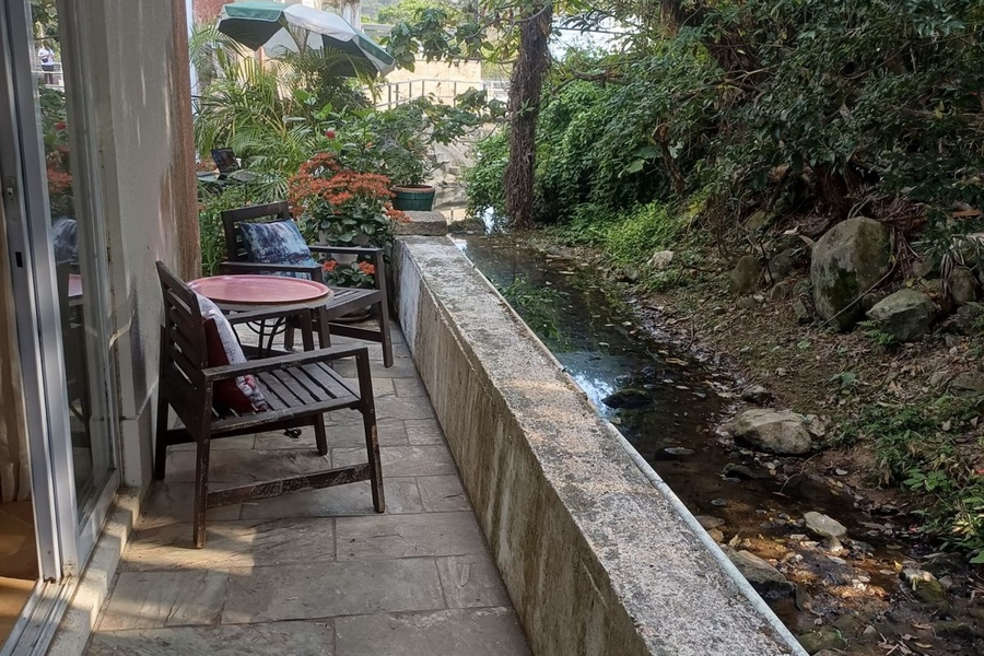 Duplex overlooking a stream in tranquil Shui Hau village. Featuring a large living area with a kitchenette and a bathroom on the G/F. The sliding doors on this floor open to a calming river view with outdoor sitting area by the stream. A spacious bedroom on the 1/F with a private balcony, perfect for relaxation. Bright and airy with aircons and ceiling fans. Beach and hiking trails at your doorstep. Public transport close by.